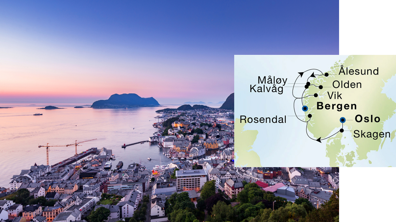 Nowhere are there fjords to match the grandeur of those in Norway, where the clear water reflects the mountains like a mirror. Sail between soaring granite cliffs and spy mountainside farms, charming villages, and an array of wildlife along this stunning coastline. Call on Norway’s seaside cities—Oslo, Bergen, Ålesund—and explore secluded harbors, UNESCO World Heritage sites, and perfectly preserved Old Towns. Discover the quaint coastal towns of Norway’s Måløy, Kalvåg, and Olden. With more time to explore dramatic landscapes and quaint villages, with longer port calls under summer’s extended daylight hours—all best experienced from the perspective of your intimate SeaDream yacht.