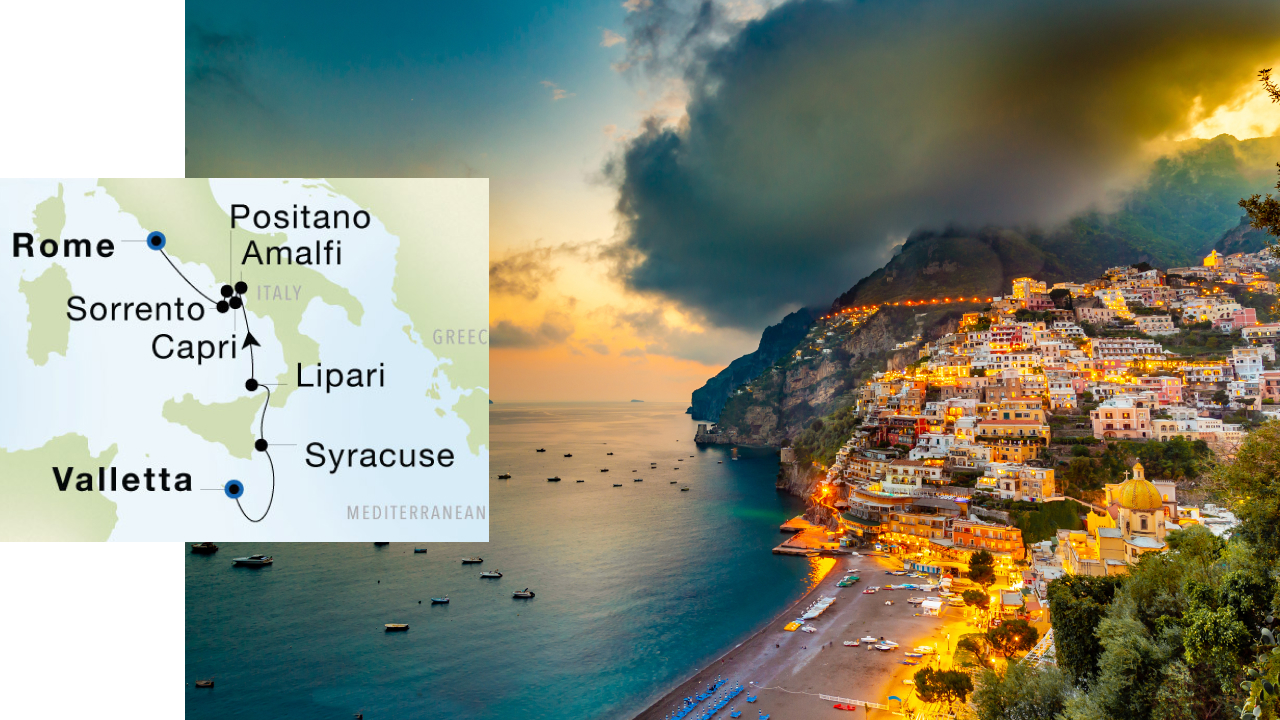 On this small ship yachting voyage, you will kick off your once-in-a-lifetime journey with a dramatic viewing of the solar eclipse from your yacht in the Mediterranean. Explore Sicily with a call to ancient Syracuse, your gateway to the UNESCO-awarded Baroque city of Noto and the Catacombs of San Giovianni, and the island of Lipari, enjoying a scenic sailing past impressive Mt. Stromboli. Discover the yachting playgrounds and pristine beaches of the UNESCO-awarded Amalfi Coast with a call on Amalfi and an overnight in sophisticated Capri. Enjoy romantic Positano, where the movie Under the Tuscan Sun was filmed, and quaint Sorrento, sitting pretty in the Bay of Naples.