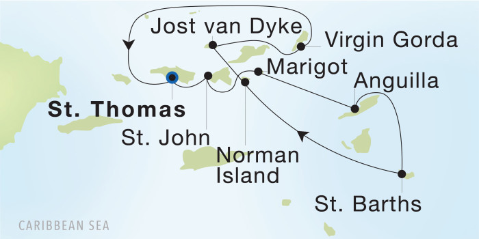 The capital and largest city in the U.S. Virgin Islands. It has two ports of call for cruise vessels, Havensight and Crown Bay. SeaDream yachts are almost always docked at Crown Bay which is very close to the airport. In the event the yachts call to the island as a port of call rather than an embarkation point, you will find the yacht anchored in the bay and tendering downtown. The island has tons of history, beautiful beaches, a fantastic golf course and incredible shopping options.