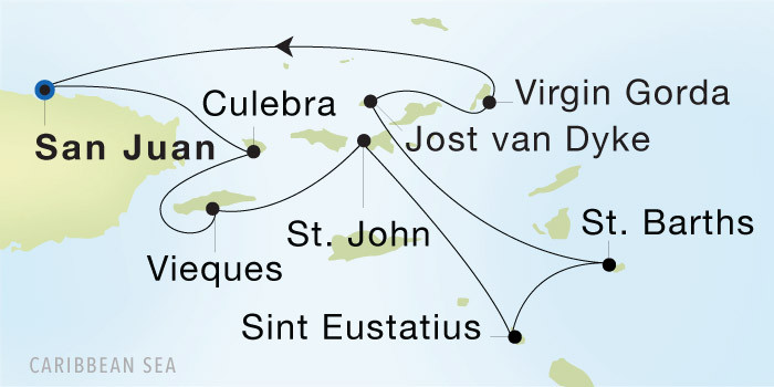 San Juan, founded in the 1520’s by Spanish settlers, is both the largest city and the capital city of Puerto Rico. A territory of the Unites States, Puerto Rico is comprised of the large main island as well as five smaller islands, including the popular islands of Vieques and Culebra (both ports of call on select SeaDream voyages). SeaDream docks in Old San Juan, the oldest part of the city. Parts of this historic port city are still surrounded by stone walls dating back to the 1500’s. Narrow cobblestone streets, small shops, and points of interest like Cathedral of San Juan Bautista make this charming city a great place to stroll. Guests sailing into or departing from San Juan will enjoy views of Castillo de San Felipe del Morro, a mid- 1700’s Spanish fortress. San Juan Luiz Munoz Marin Airport is approximately a 30-minute drive to the port in Old San Juan. Currency in Puerto Rico is USD.